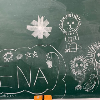 この絵はいつかのレッスン前、国領に通う小さな画伯たちが描いたものです🦁